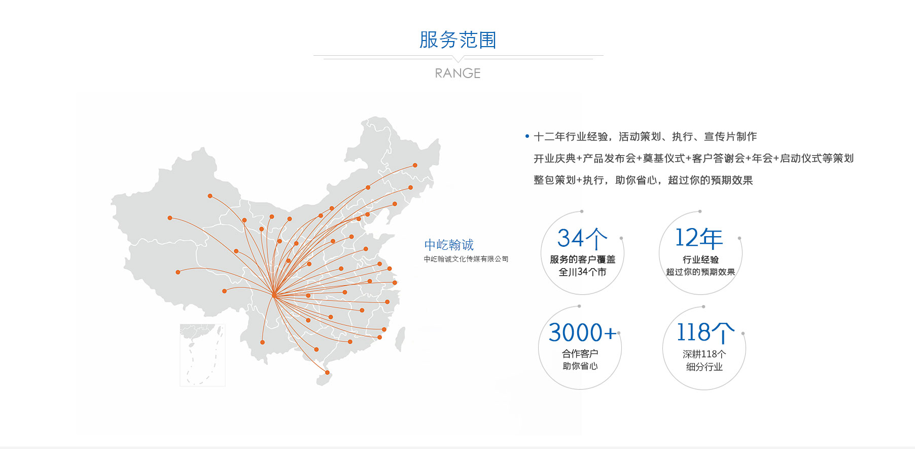 歷經(jīng)多年深耕,公司已形成 “公關(guān)活動、展覽展示、品牌戰(zhàn)略服務(wù)、影視制作” 四大核心業(yè)務(wù)板塊。從創(chuàng)意策劃到落地執(zhí)行,從品牌塑造到視覺呈現(xiàn),從活動運營到影像記錄,中屹翰誠始終以專業(yè)視角與創(chuàng)新理念,滿足客戶多元化需求。憑借出色的服務(wù)品質(zhì)與專業(yè)能力,公司在市場中穩(wěn)步前行,服務(wù)版圖已拓展至政府、金融、媒體、演藝、建筑等 118 個細分行業(yè),與超 3000 家客戶建立深度合作關(guān)系,以實力贏得廣泛認(rèn)可與信賴。
